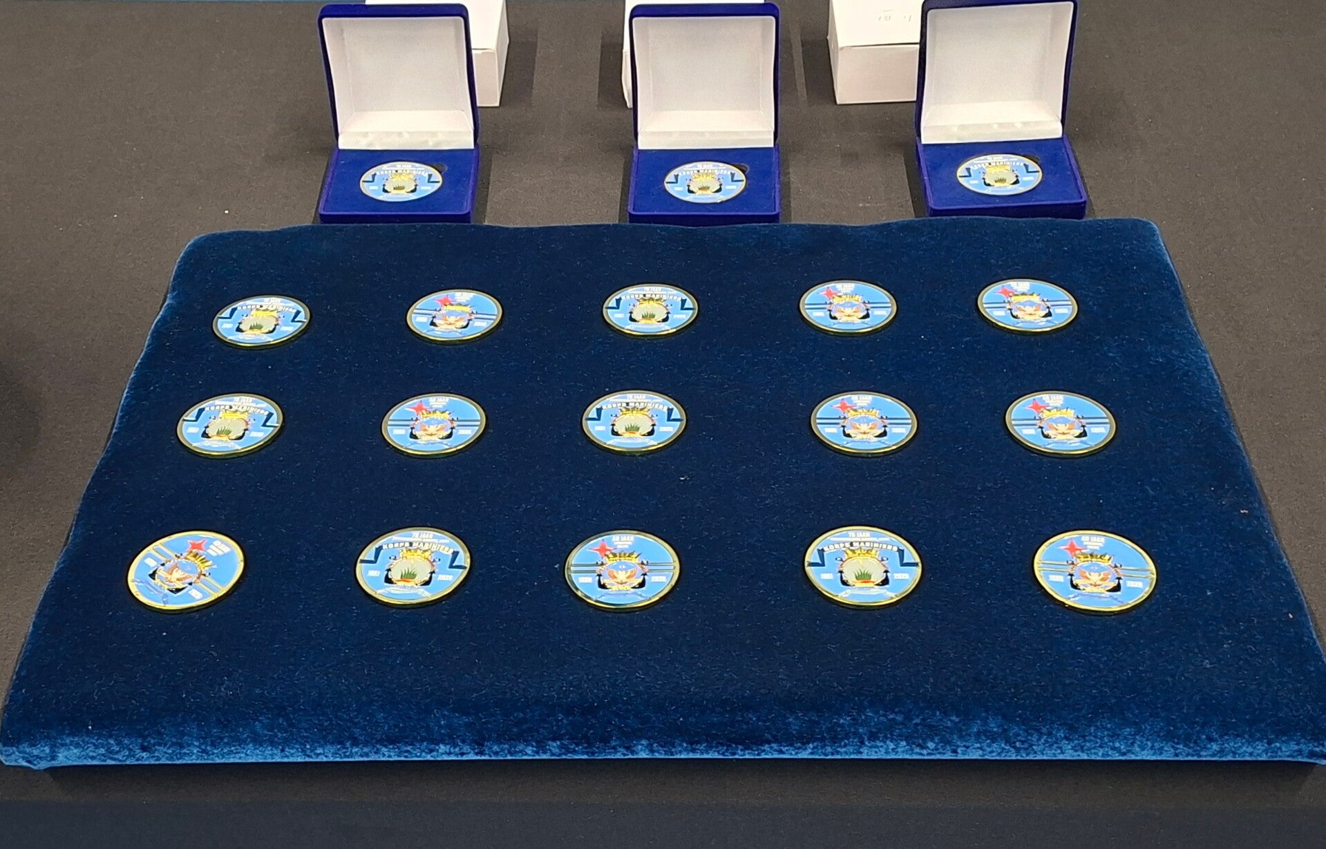Verhalen werden tijdens het eten al gedeeld en het nieuw fotomateriaal werd verzameld op de mobieltjes die alle generaties tegenwoordig standaard op de man hebben. Na het scheiden van de restanten van de maaltijd voor de uitgang van de eetzaal ging een ieder naar de grote kantine om onder het genot van een drankje na te keuvelen. De toko en de tap waren open en uitgeverij Klus op Dek had zijn waar ook uitgestald. Er was iemand gevonden met het kwaliteitsnummer filmoperator en zo als tijdens het ochtendprogramma was toegezegd werden de diverse video's, waaronder die met de inbreng van de huidige commandant van de Marinierskazerne Savaneta, Tim van Wijk, alsnog vertoond.