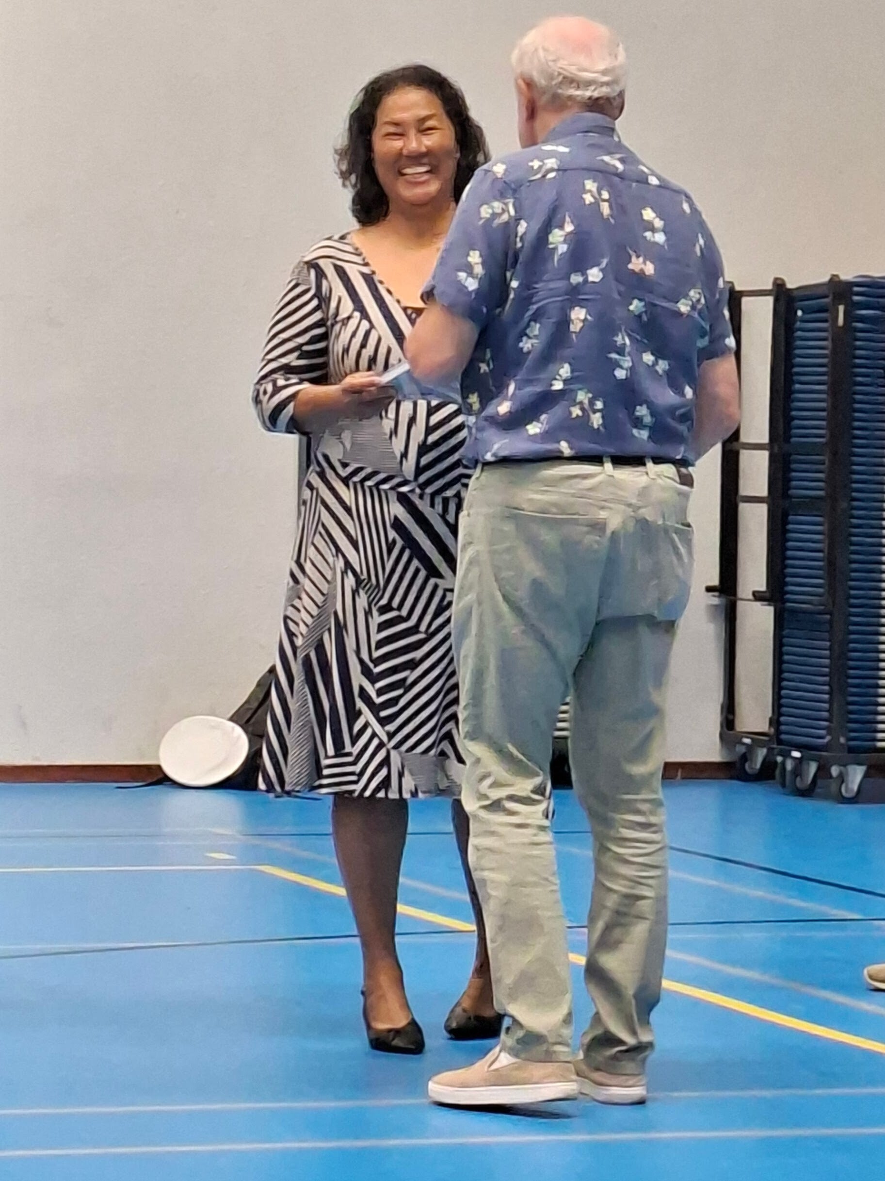 Het werd tijd om naar de eetzaal te gaan. Vanwege het bekende menu op de woensdag bij de Koninklijke Marine was de woensdag bewust gekozen als de dag waarop de reünie zou moeten plaats vinden. De "blauwe hap" stelde zeker niet teleur. De tijden veranderen en de grote metalen plaat met de verschillende vakken is een diep bord met blauw randje geworden en de kroepoek ligt niet meer los voor het grijpen maar zit in een plastic zakje. Aan de kwaliteit van het eten is nog steeds weinig af te dingen.